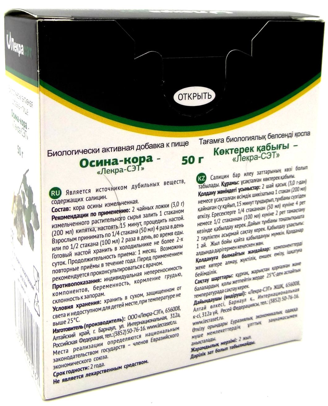 - Чтобы купить Осина (кора) Лекра-Сэт, 50г совершите всего несколько шагов: укажите количество продукта и нажмите на кнопку «Купить».